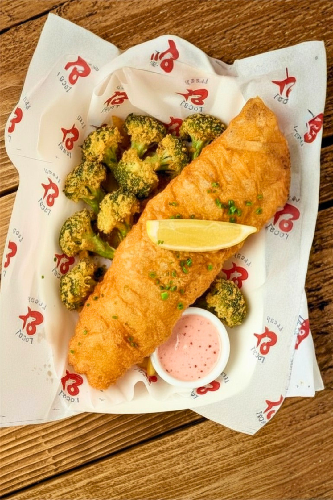 Fried sig fillet, battered broccoli, sriracha mayo.